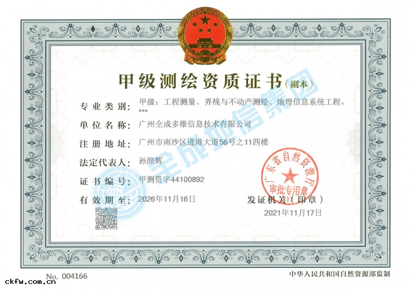 甲級測繪資質證書